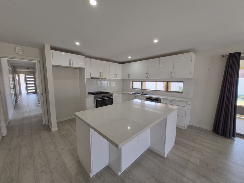 Kitchen comes with 900mm freestanding oven, stone bench tops and pantry