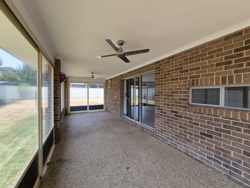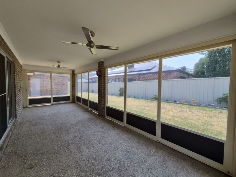 Lavish enclosed entertaining area with ceiling fans is a feature of this home.